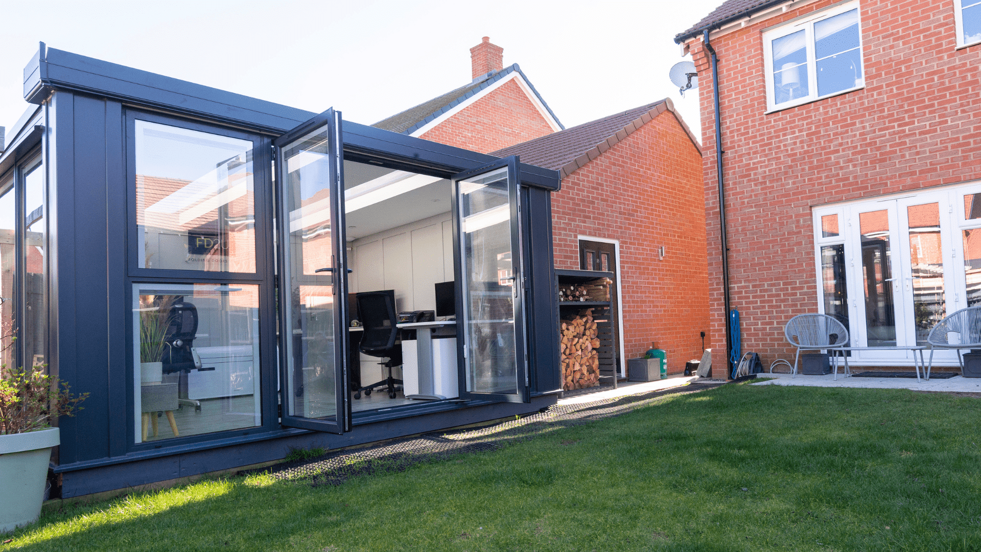 Ultraframe garden rooms give you enough design flexibility to personalise your space with various custom options. Choose from door styles like classic French doors, sleek bi-fold or practical sliding doors for a modern touch. Ultraframe garden rooms can also be tailored with full-length floor-to-ceiling windows to maximise light. For exterior finishes, you can opt for contemporary coloured cladding to suit your style and make your garden room uniquely yours.